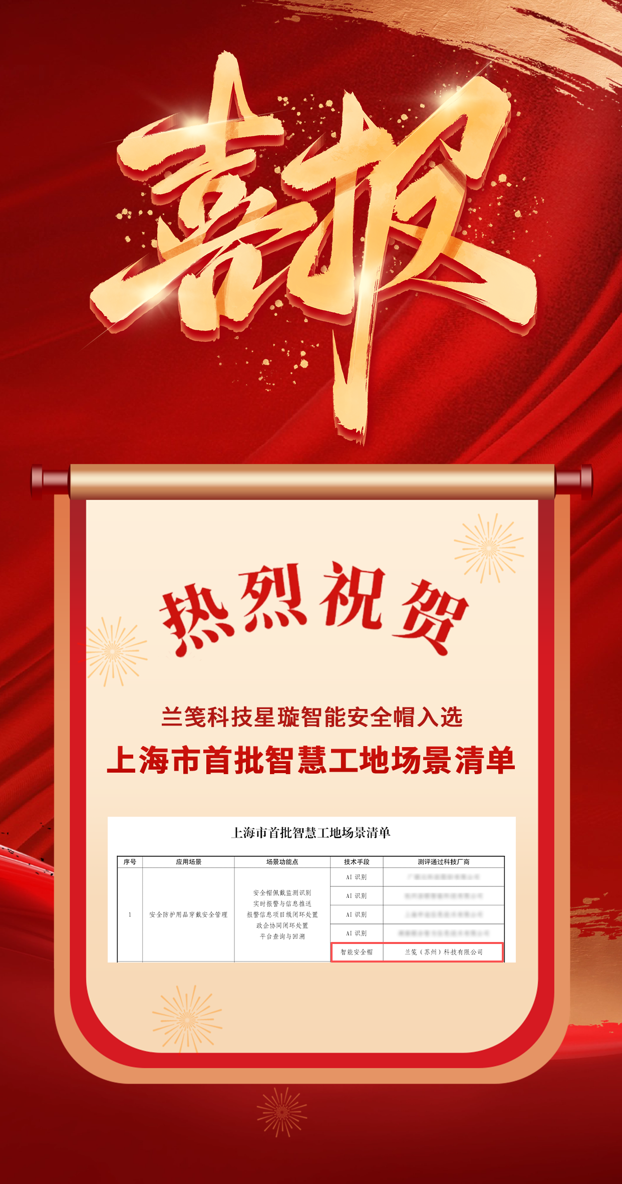 喜報(bào)!熱烈祝賀蘭箋科技星璇智能安全帽入選上海市首批智慧工地場景清單!